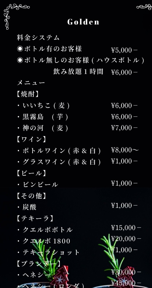 システム及びメニューの料金は2026.3 現在のものです。変更になれば随時更新しますが、必ずお店でご確認ください。また、別途消費税を申し受けます。