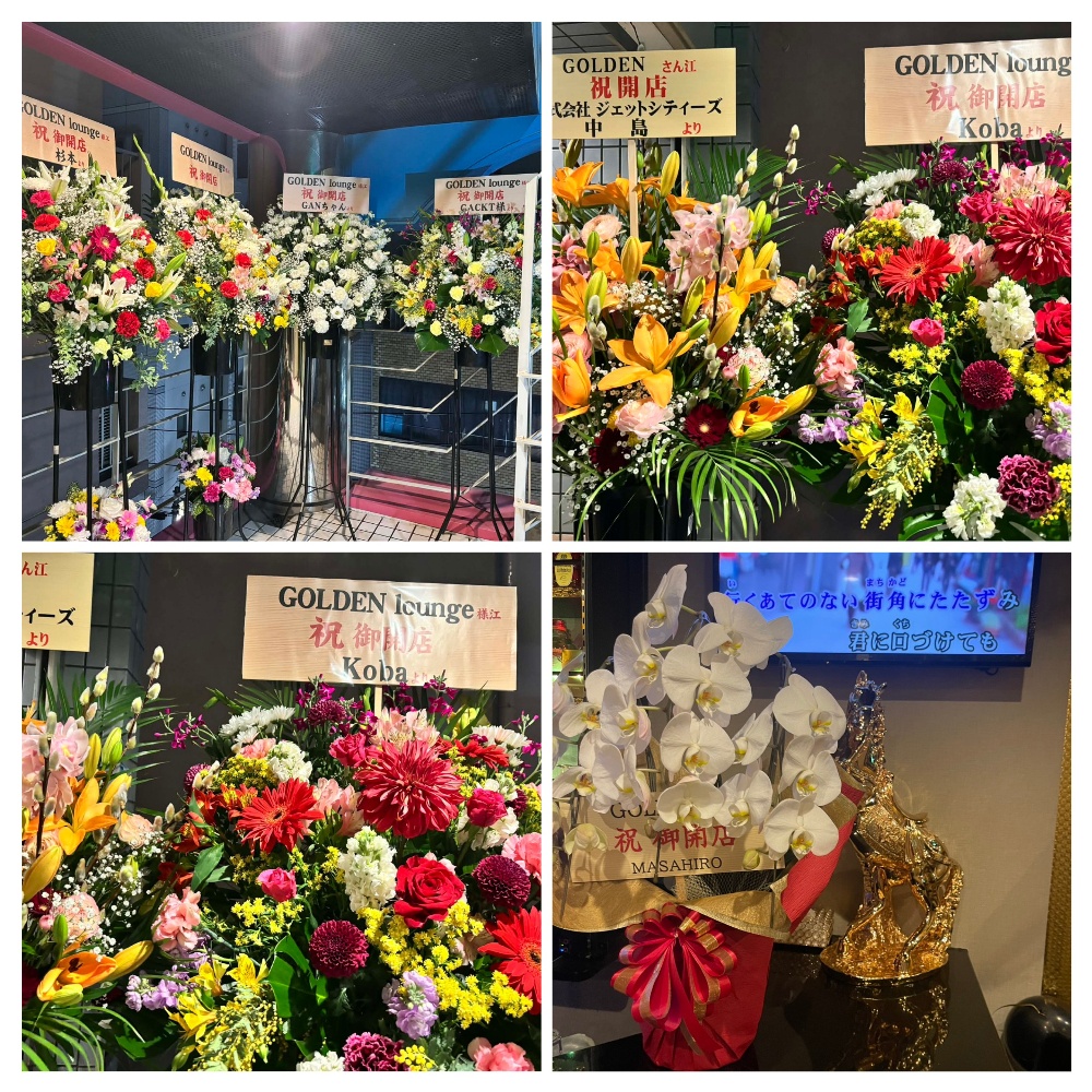 みな様、たくさんのお祝いのお花、